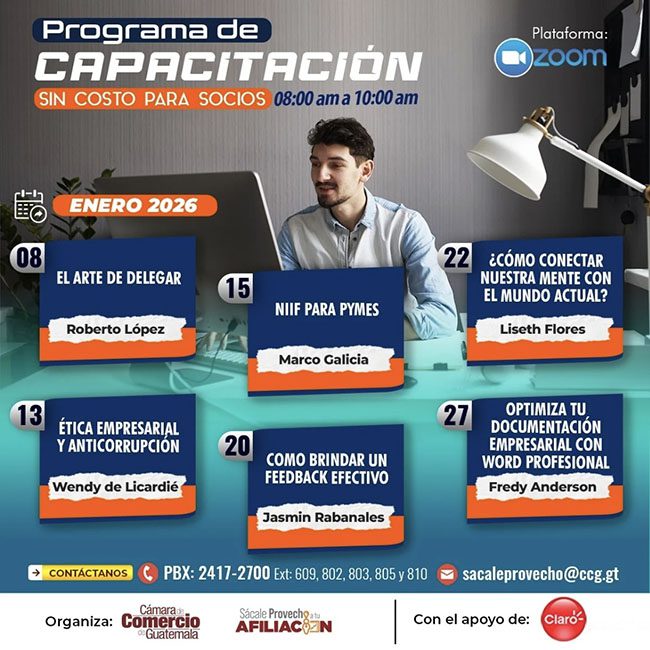 En Cámara de Comercio de Guatemala ofrecemos múltiples beneficios sin costo a nuestros afiliados, así como precios exclusivos en diversos servicios y eventos con el fin de promover el comercio y desarrollo empresarial de Guatemala.