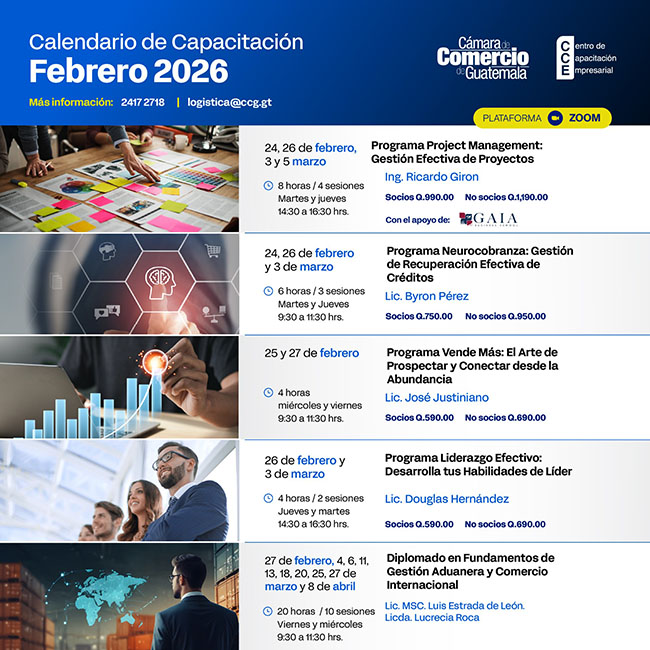Conoce algunos de los proyectos que desarrollamos en Cámara de Comercio de Guatemala en favor de nuestra cartera de afiliados y el sector empresarial del país.